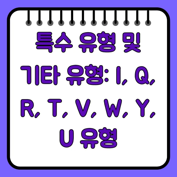 특수 유형 및 기타 유형: I, Q, R, T, V, W, Y, U 유형