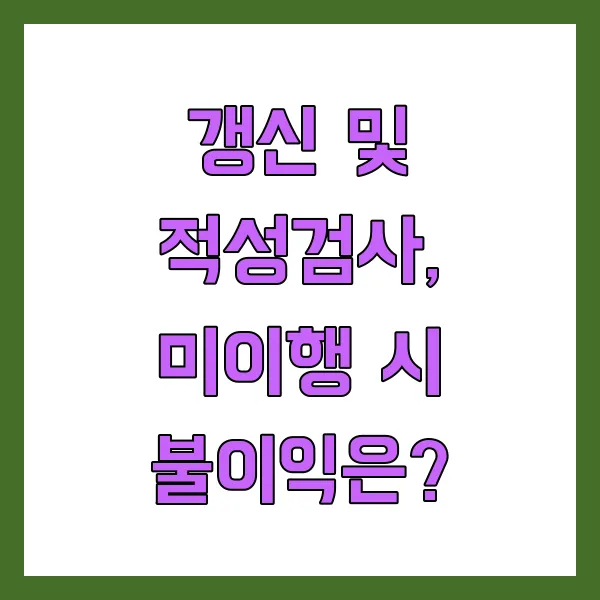 정해진 기한 내에 갱신 또는 적성검사를 하지 않으면, 운전면허는 정지 처리됩니다. 이후 일정 기간이 지나면 면허가 취소될 수도 있습니다. 면허 정지 상태에서 운전할 경우, 무면허 운전으로 간주되어 형사처벌 대상이 될 수 있습니다.